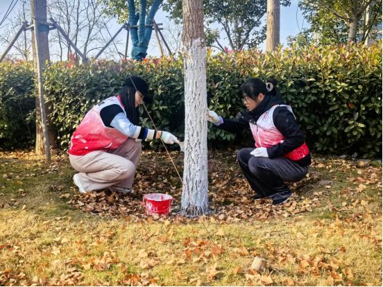 活动现场,各支部党员严格按照操作规程,有序开展树木刷白工作。经过规范作业,树木刷白工作顺利完成,既有效增强了树木抗寒能力,又改善了园区冬季景观。
