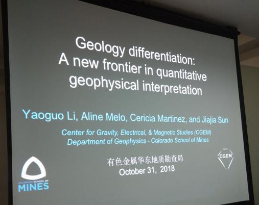 李耀国教授做了《Geology differentiation:A new frontier in quantitative geophysical interpretation》报告,李教授用通俗的语言介绍了地球物理反演最新进展及其应用情况,用大量的案例阐述了重磁电技术在岩性识别方面应用成果,实现了从地球物理单纯反演到通过算法实现岩性识别的巨大跨越,为人工智能实现从地球物理到地质解释的目的。